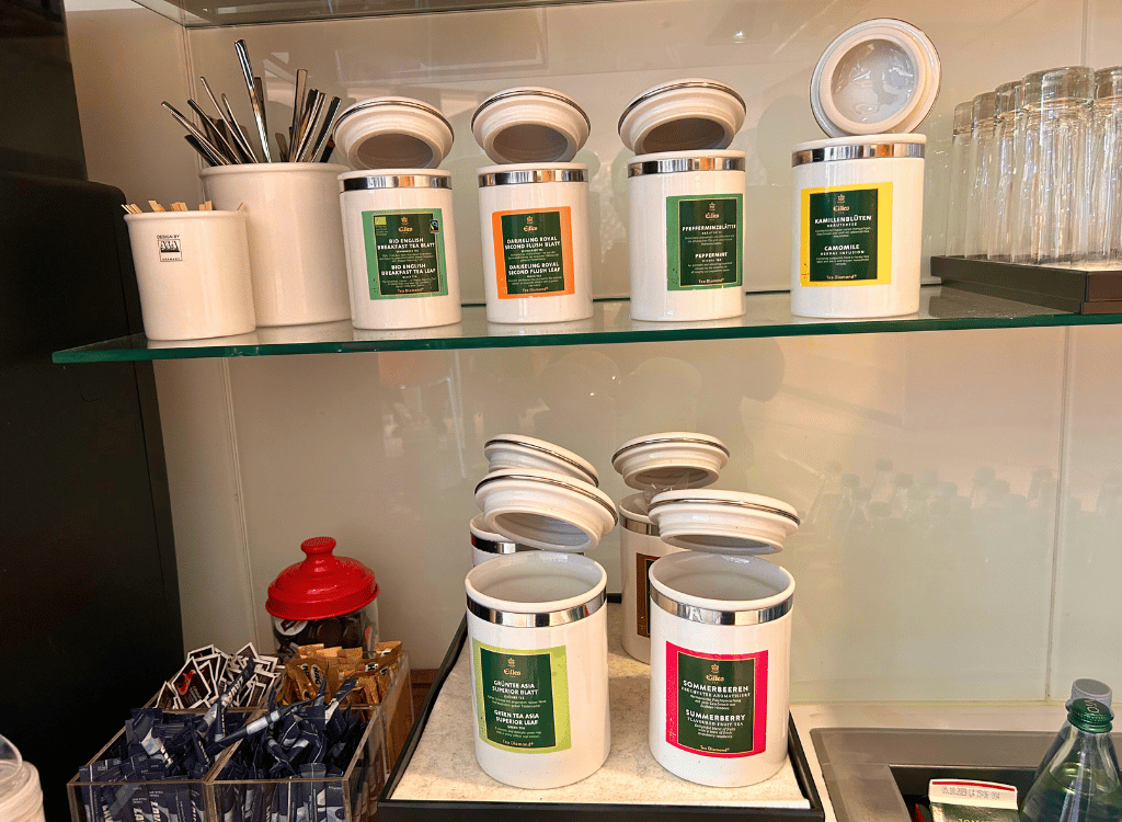 There was a tea selection from Eilles. I think it’s a German brand. The Lufthansa lounges also served the same brand.
