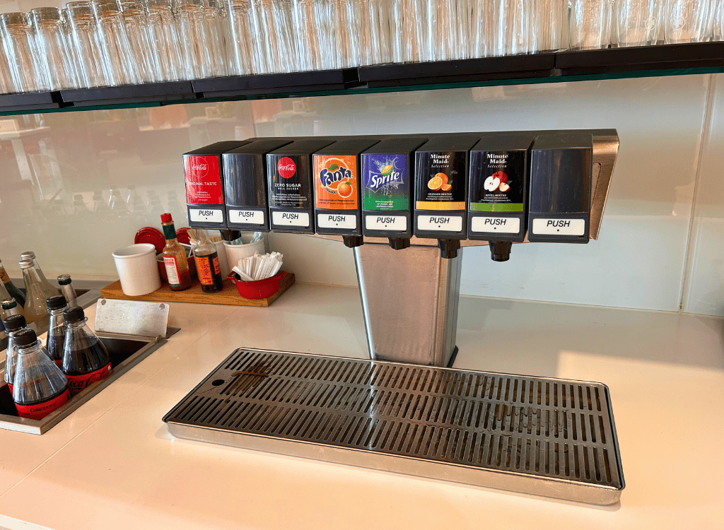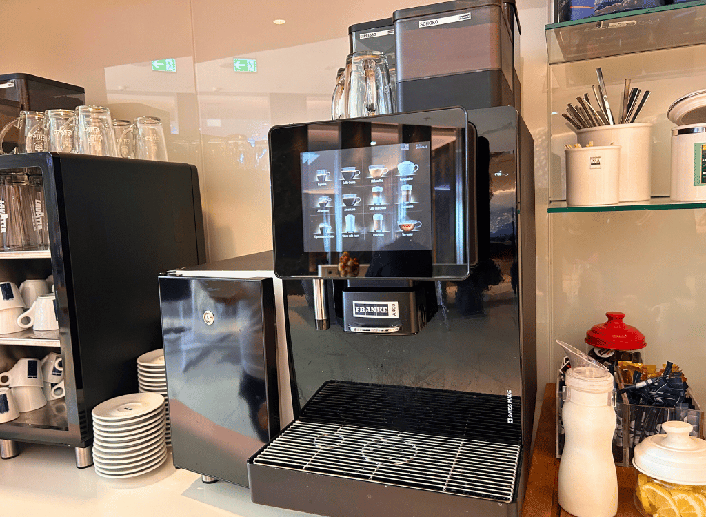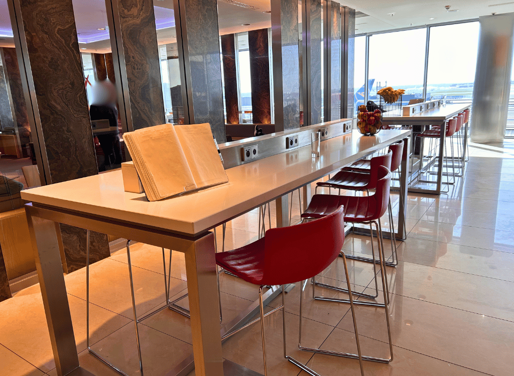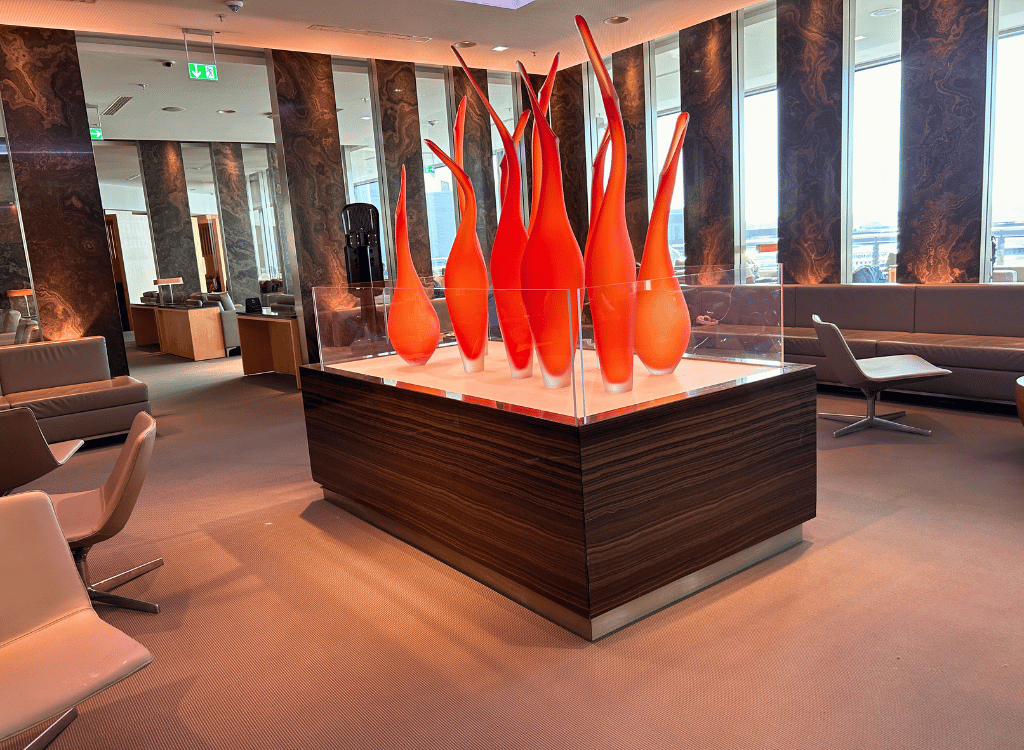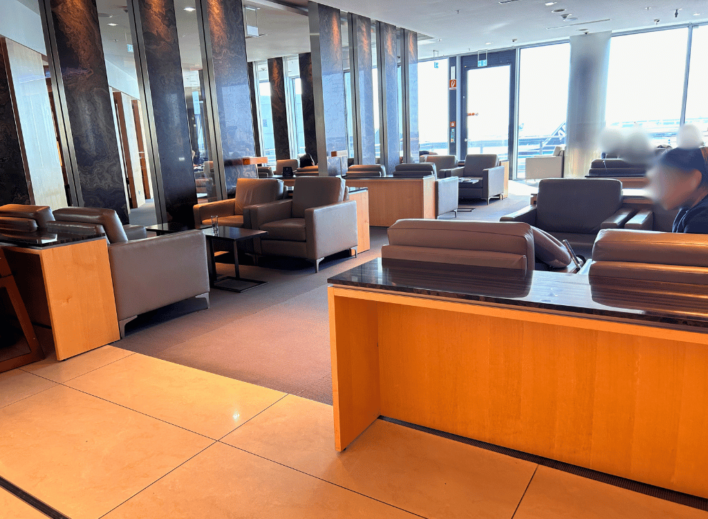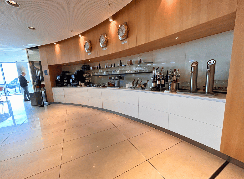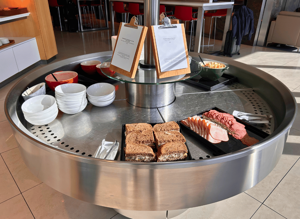 The Air Canada lounge is decent. It’s located in Frankfurt Airport Terminal 1. It has natural light, hot food and self pour alcohol. The lounge also has a really cool model of an Air Canada plane.