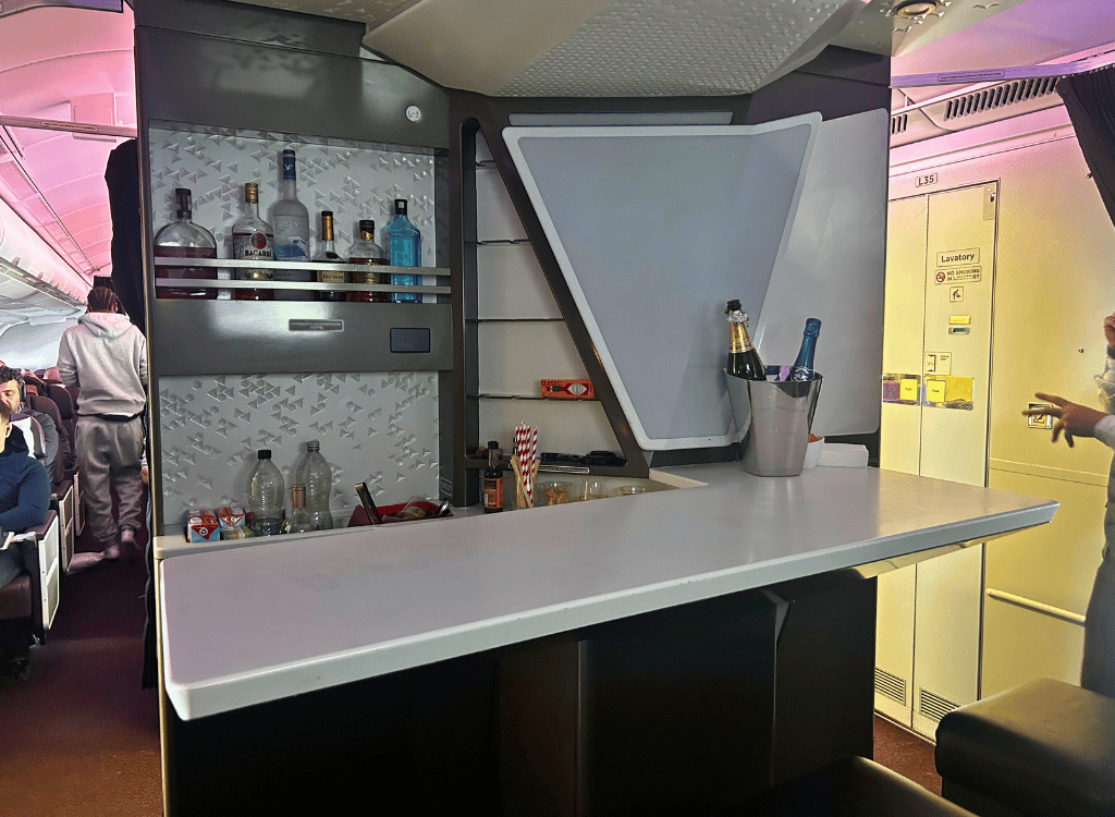 Behind the Upper Class cabin is the on board bar. It’s between the upper class cabin and premium economy.