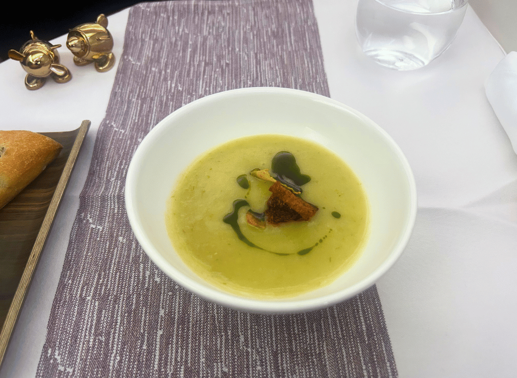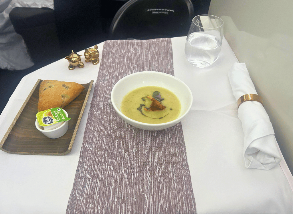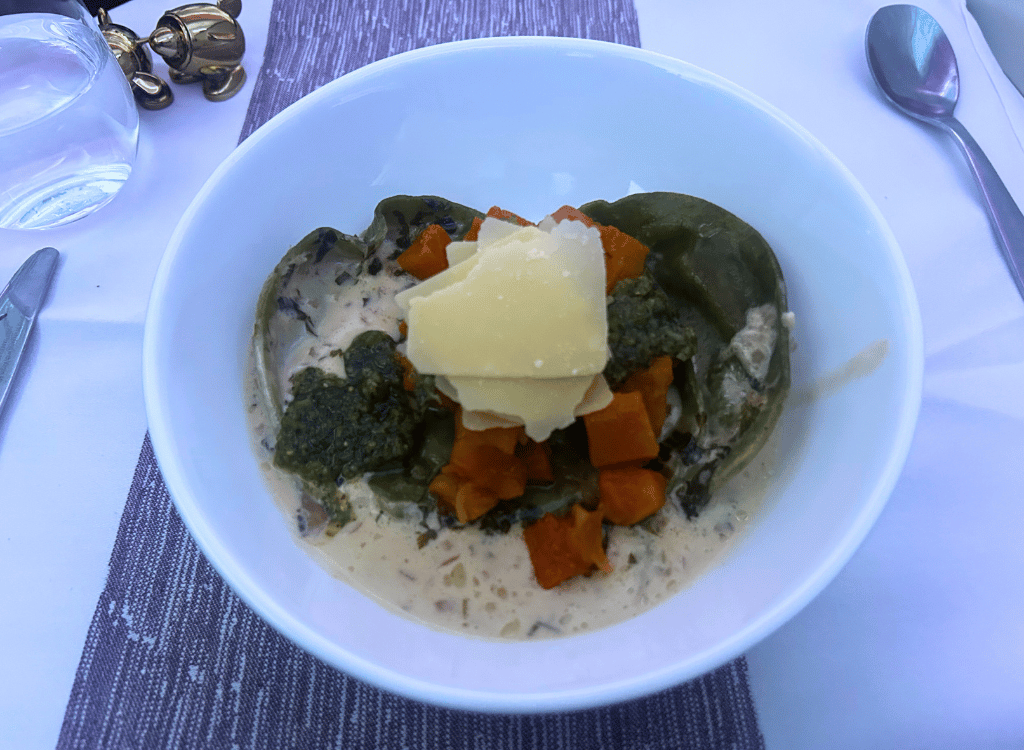 My lunch was the veg soup and pumpkin pasta. So it turns out, they just gave me the vegetarian options from the business class menu! On this day, my veg meal was of business class quality!