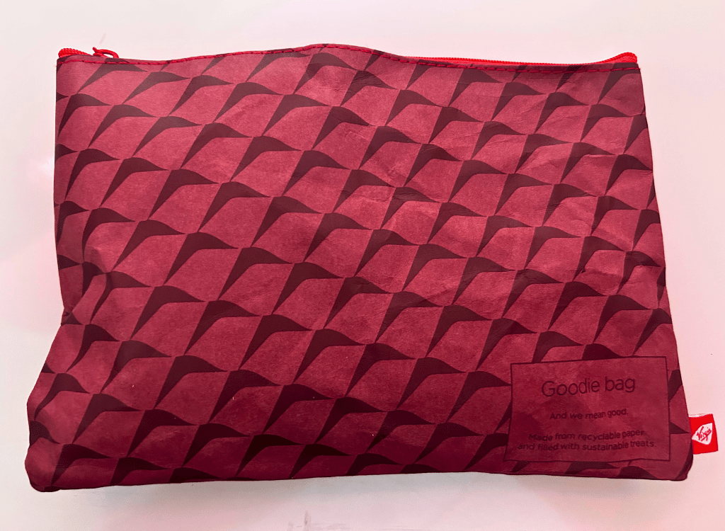 The Amenity Kit came in a paper bag. Nothing like the luxury bags you get with British Airways or Etihad. Etihad gave me a beautiful leather bag by Acqua di Parma. My review of the Etihad flight is here. My wife still has the bag!