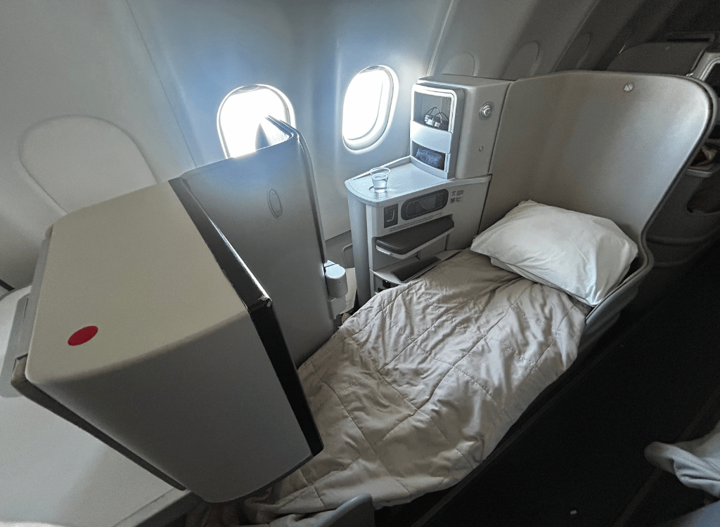 About half way through my 11 hour flight. I made up the bed.