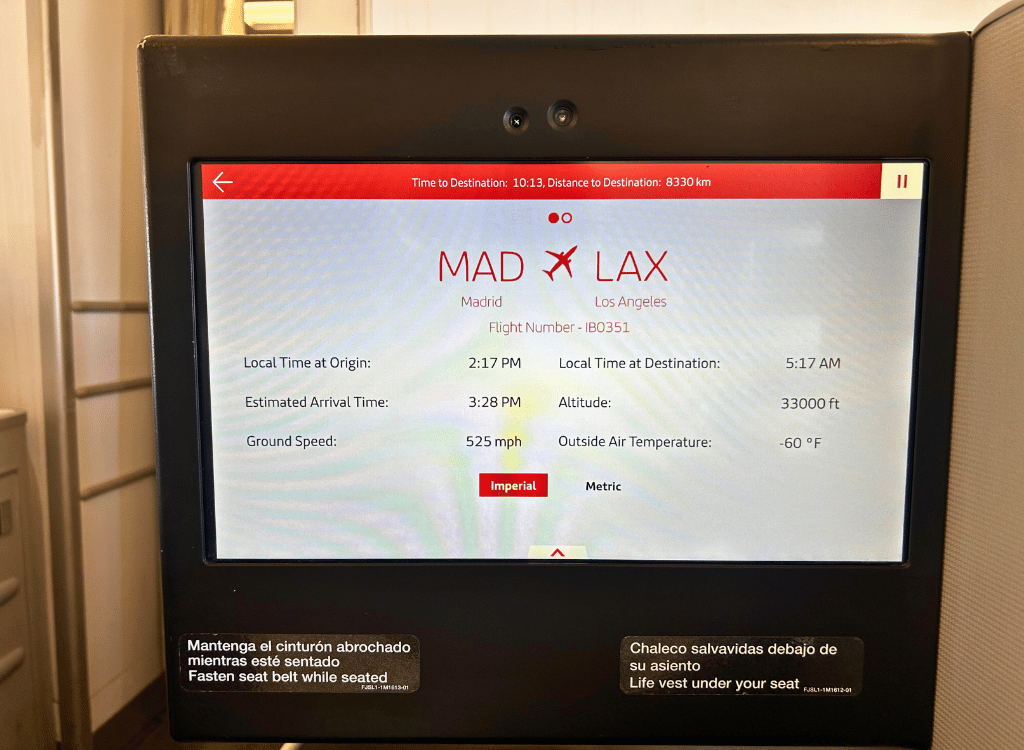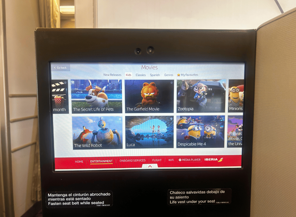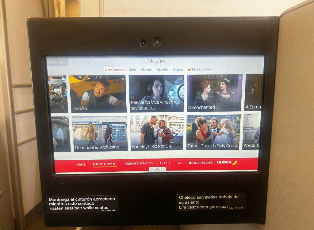 Business Class on Iberia had good entertainment options.