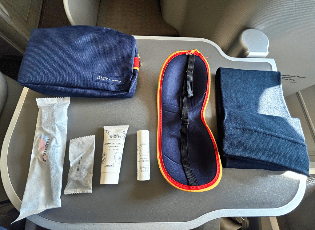 There was a pretty generic amenity kit. With hand cream, toothbrush, lip balm, eye mask and ear plugs. The bag was a $5 bag you would find in CVS (or Boots in the UK!).